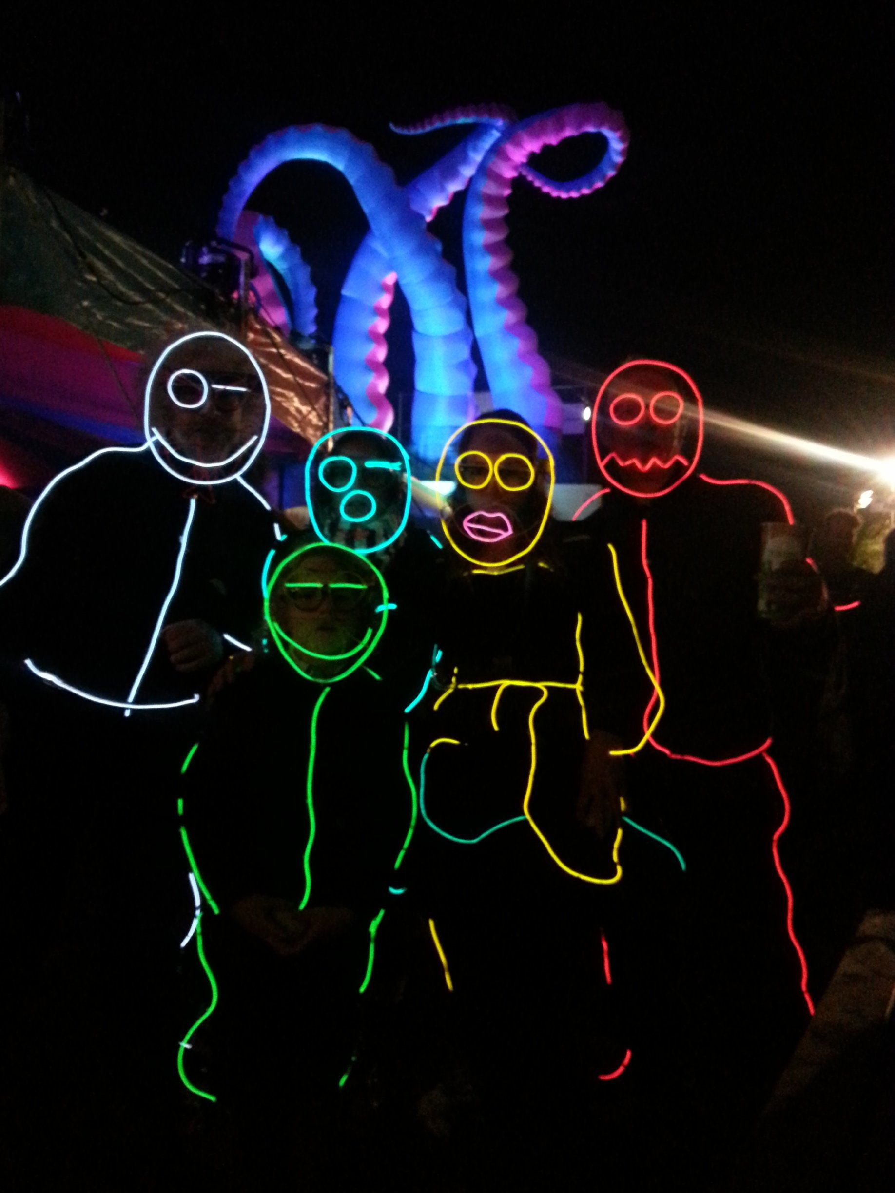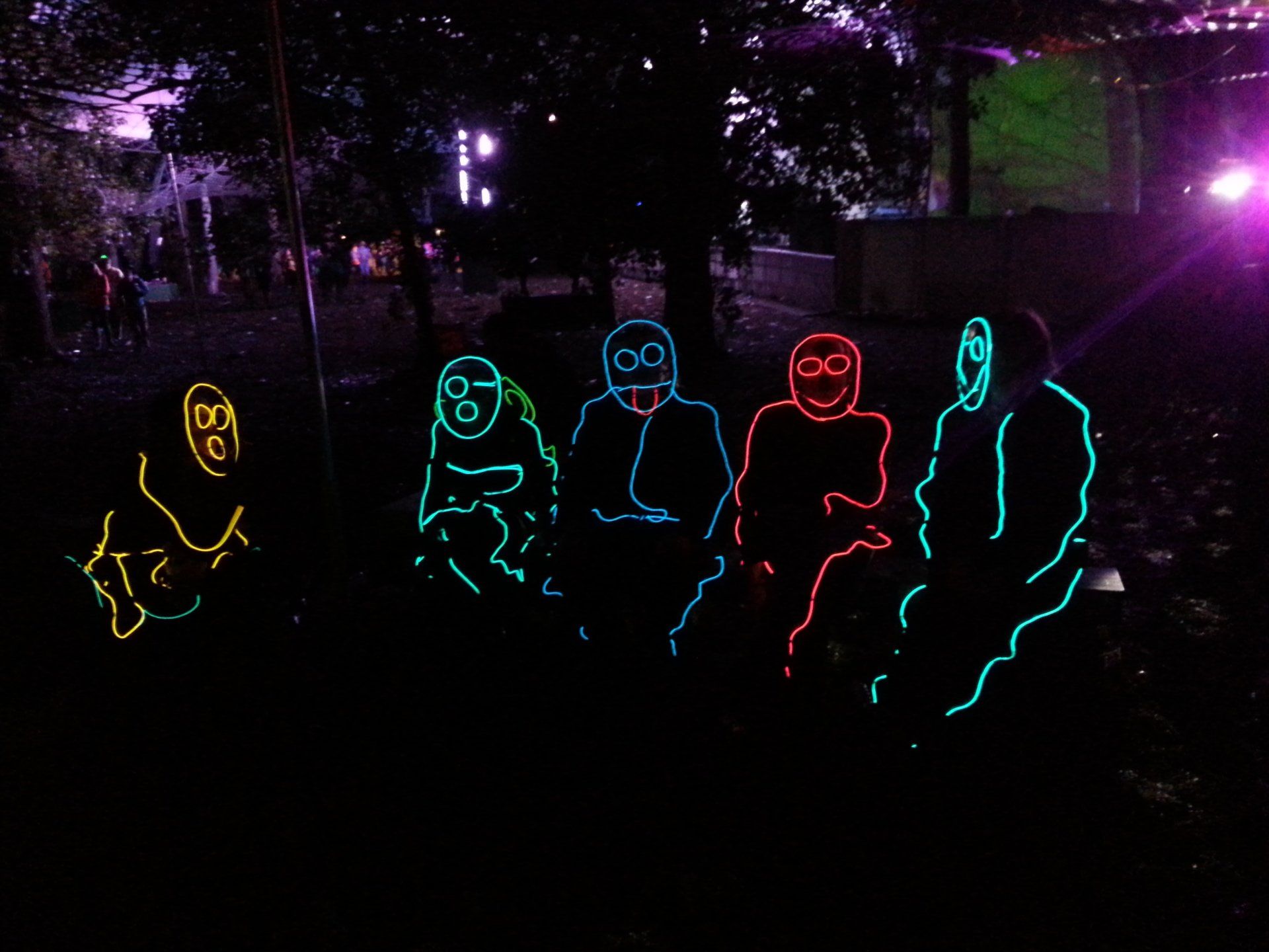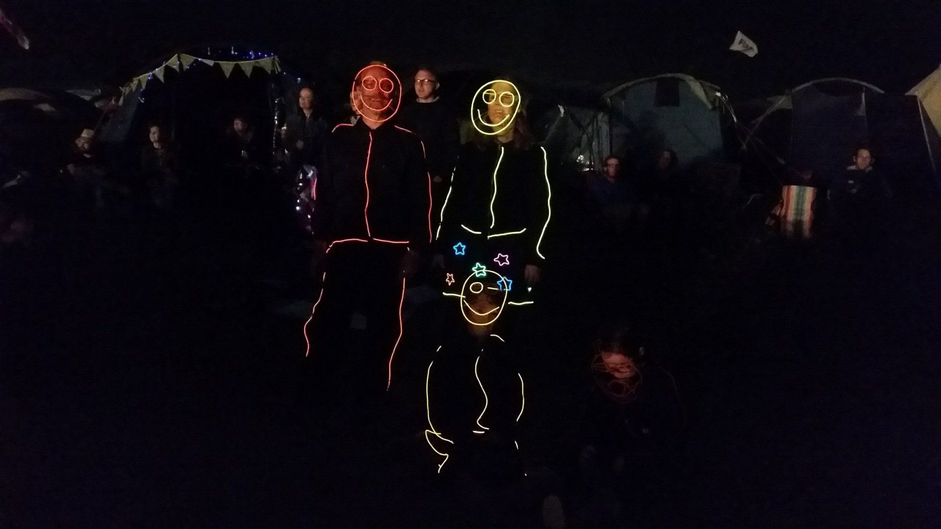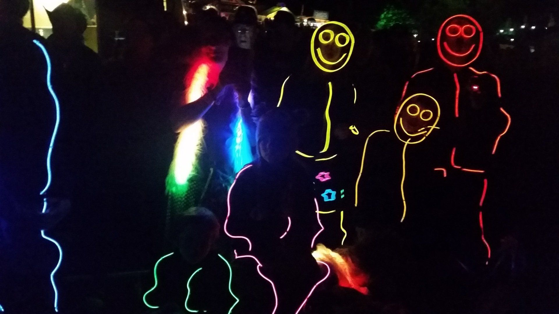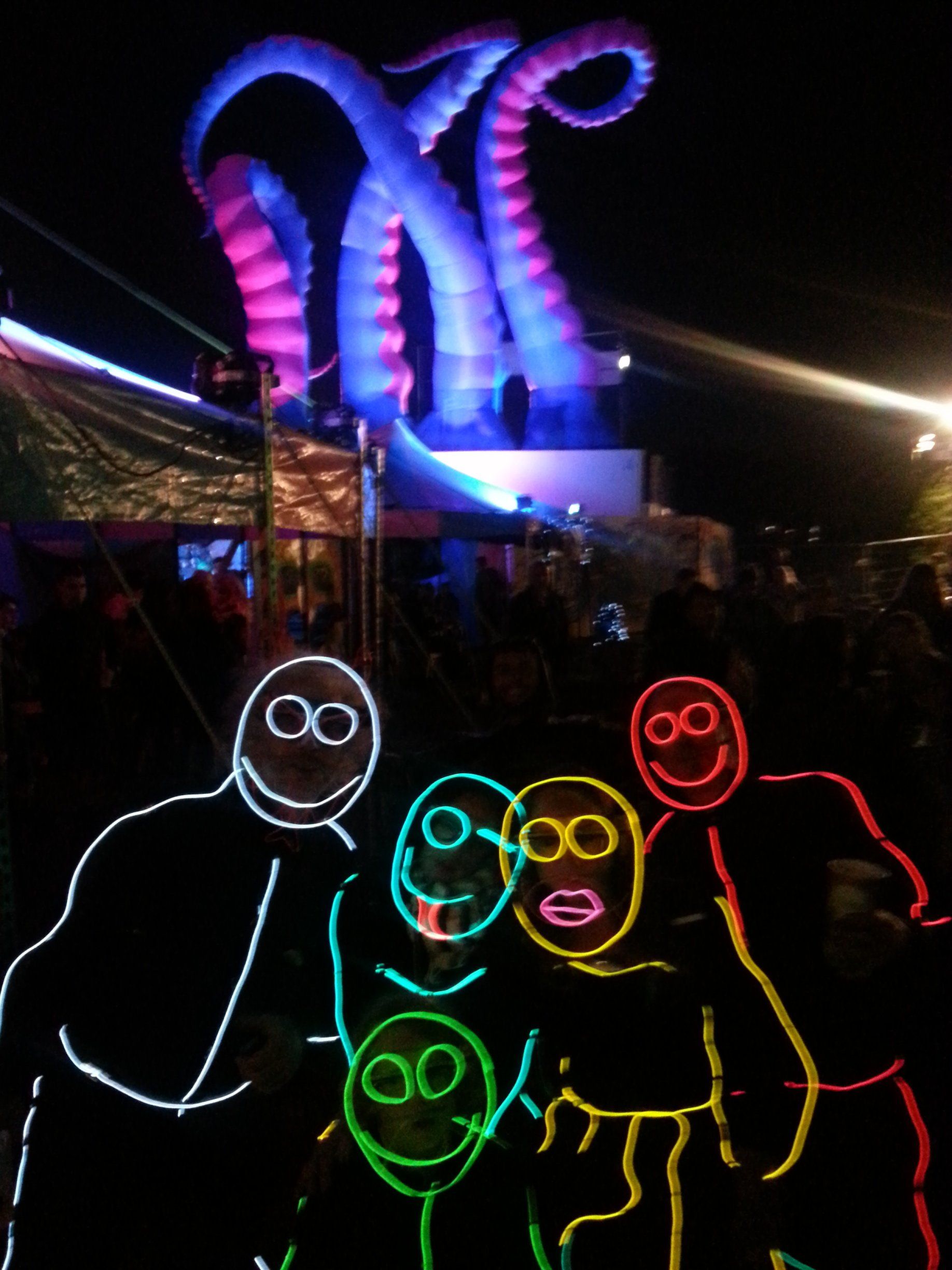We have had various guest appearances from friends over the years in a variety of colours. In the last five or so years we have had a hardcore crew of three reappearing glow people: Sam (blue), Nella (yellow) and last, but definitely not least, Jane (green).