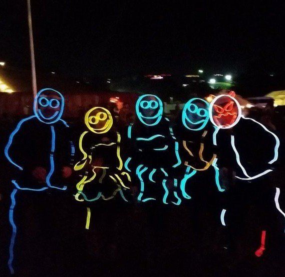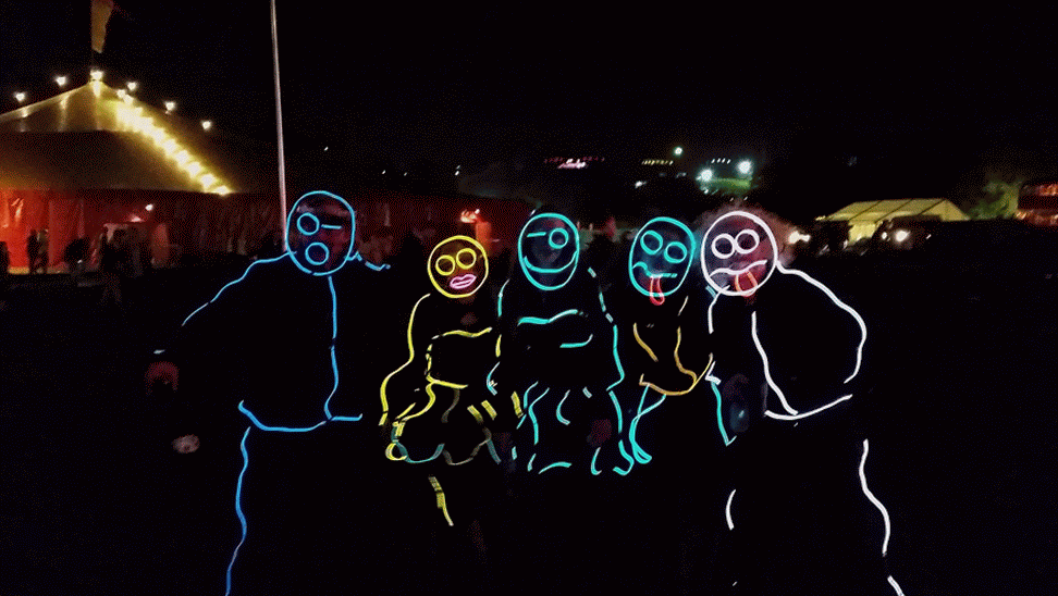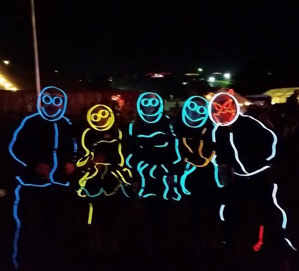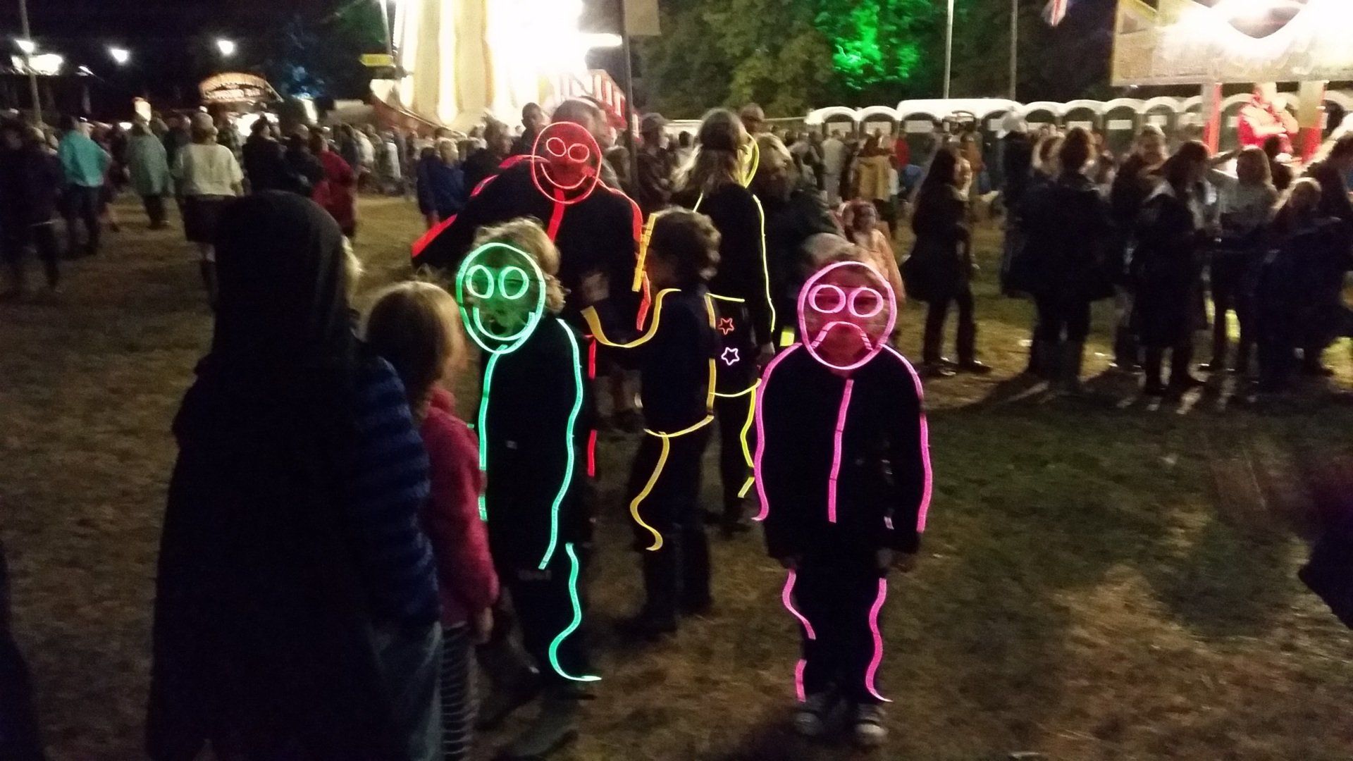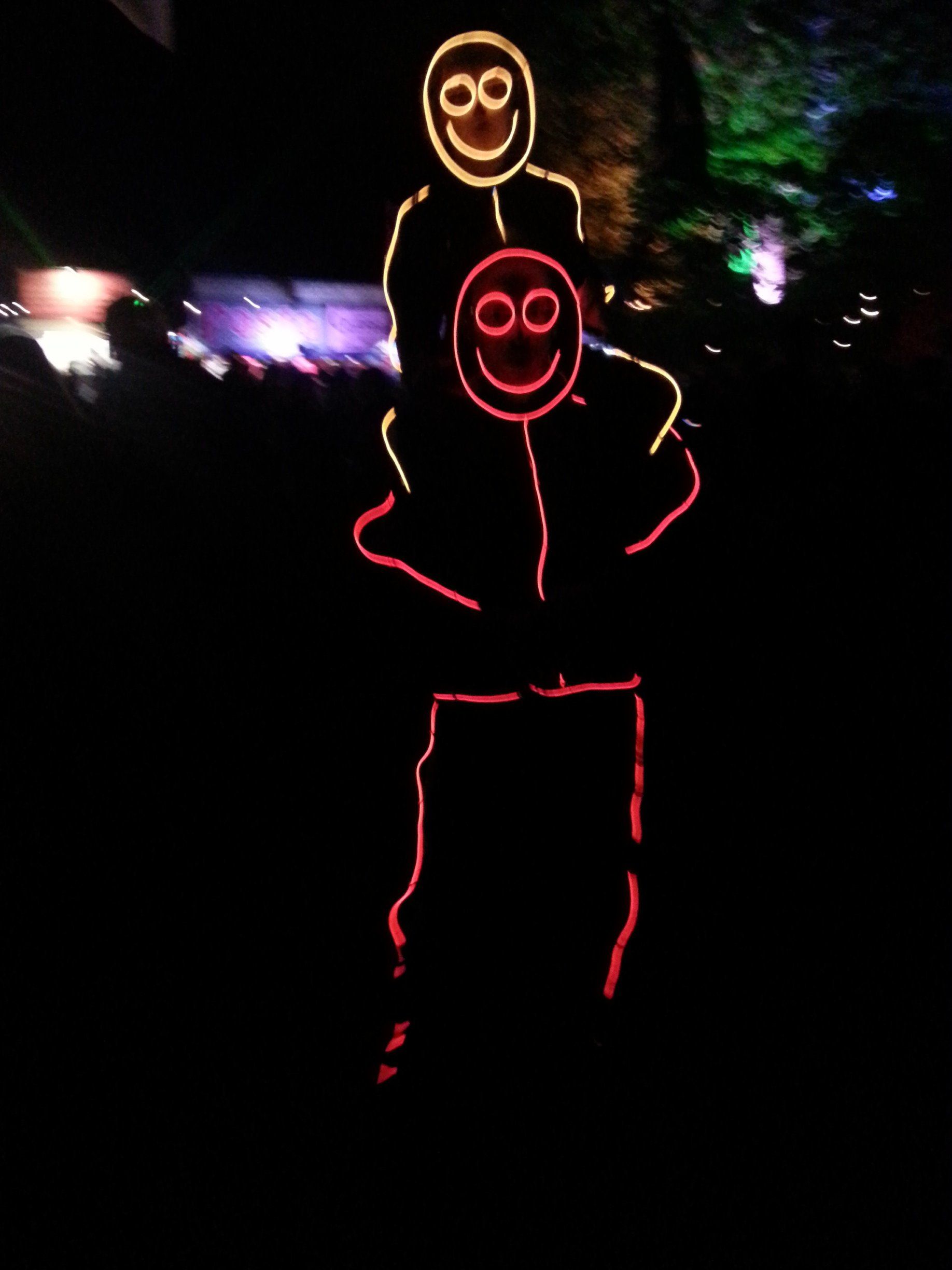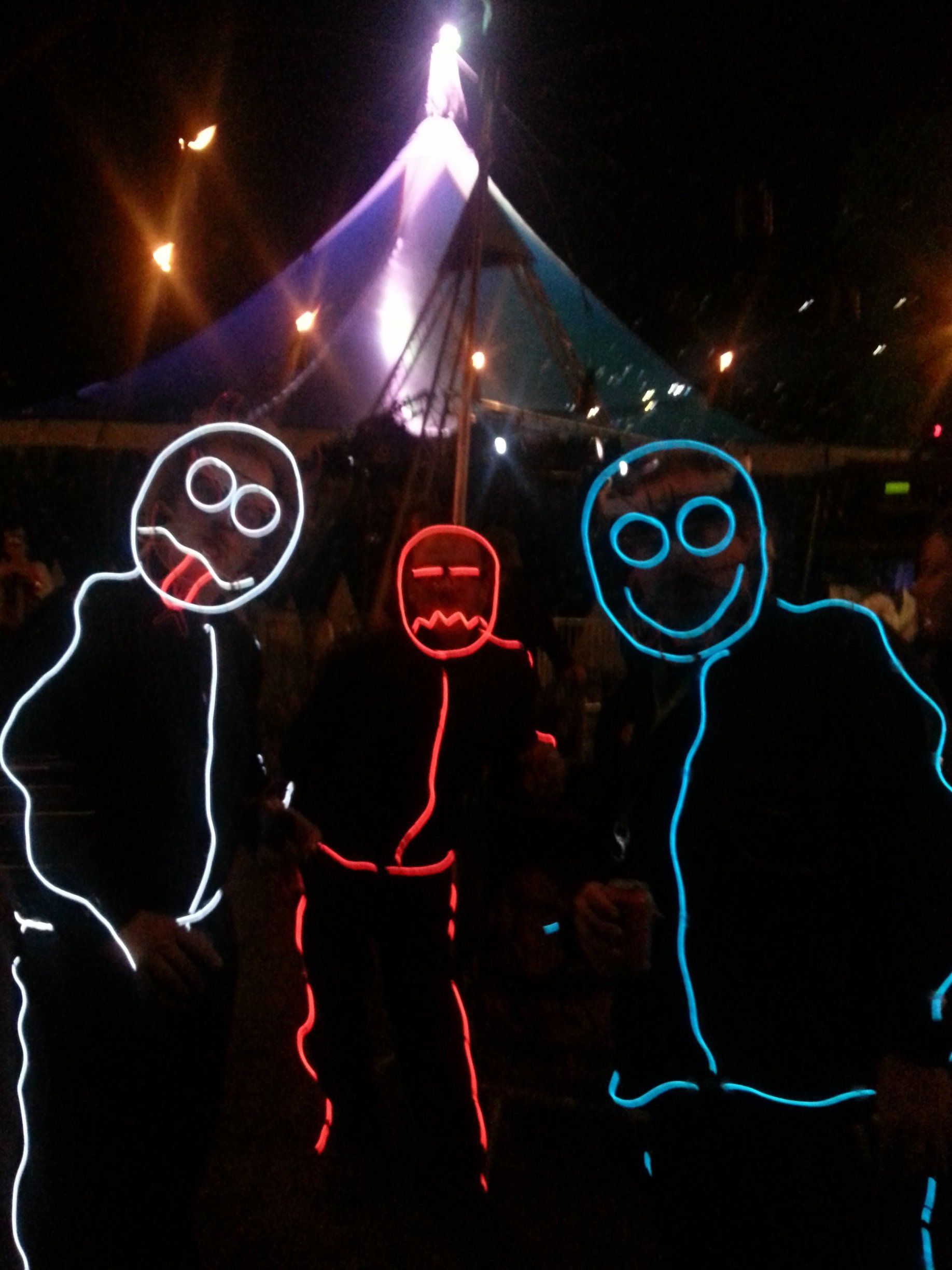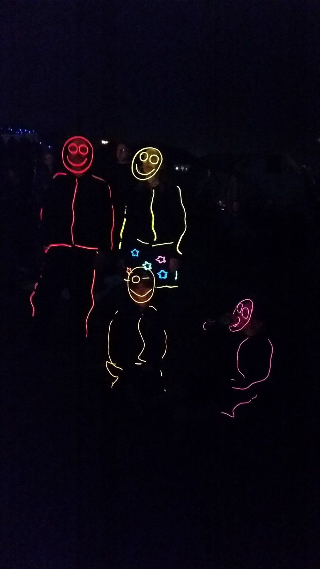 We have had various guest appearances from friends over the years in a variety of colours. In the last five or so years we have had a hardcore crew of three reappearing glow people: Sam (blue), Nella (yellow) and last, but definitely not least, Jane (green).
