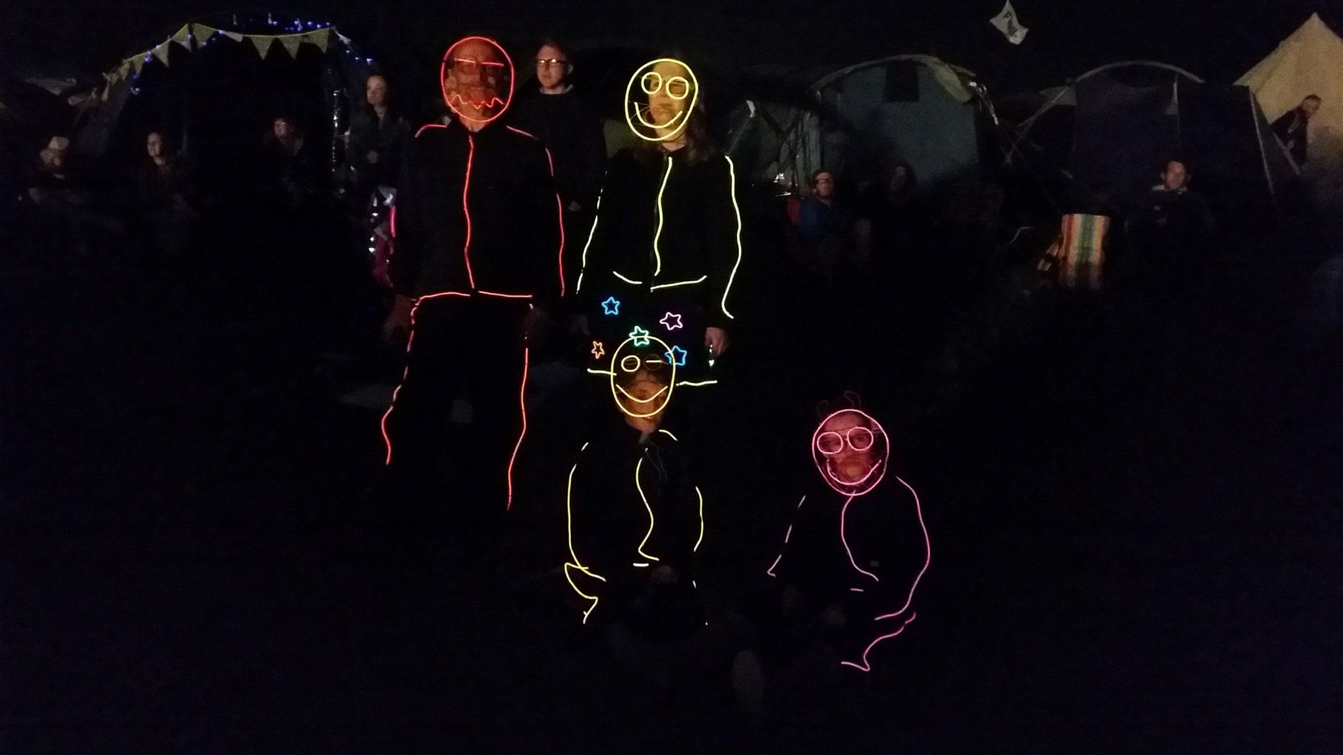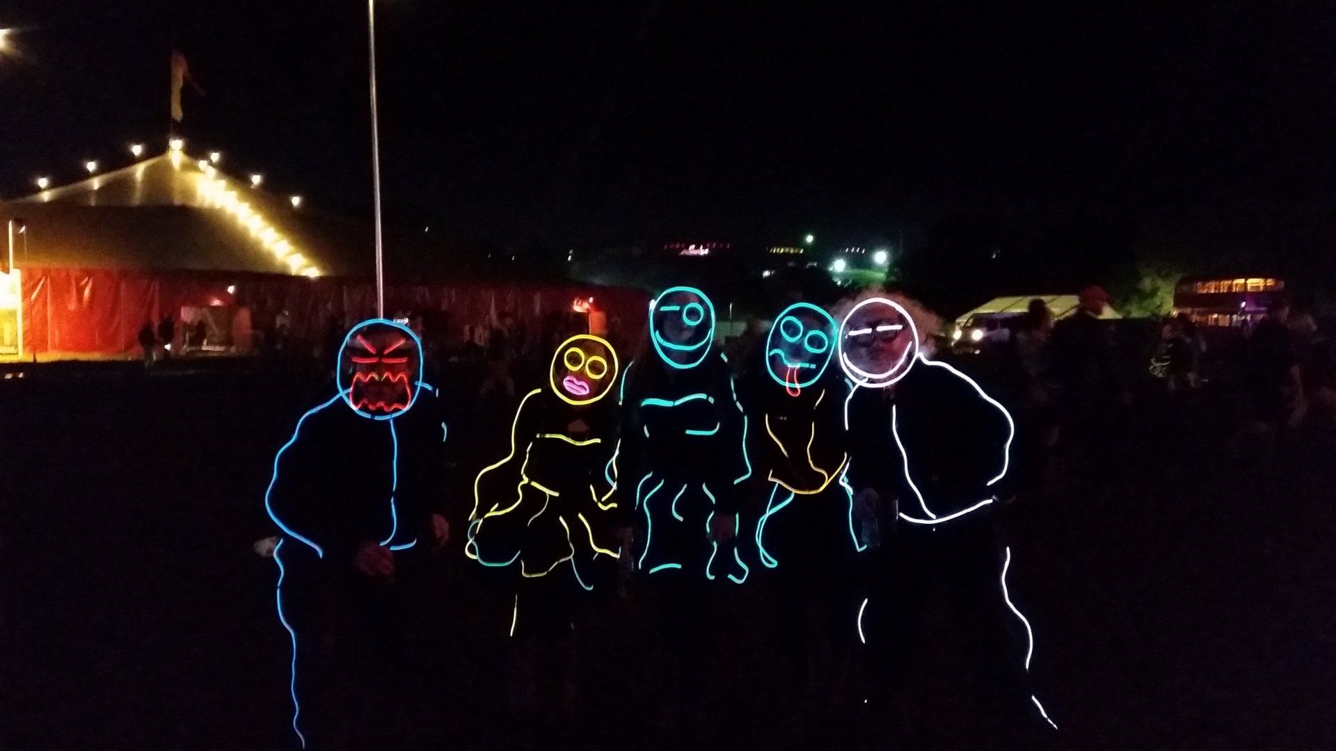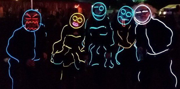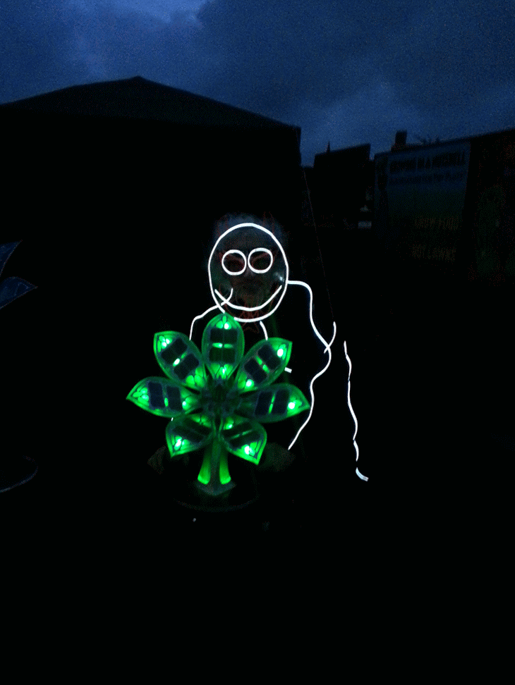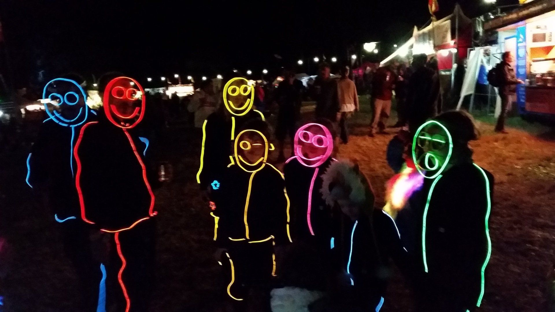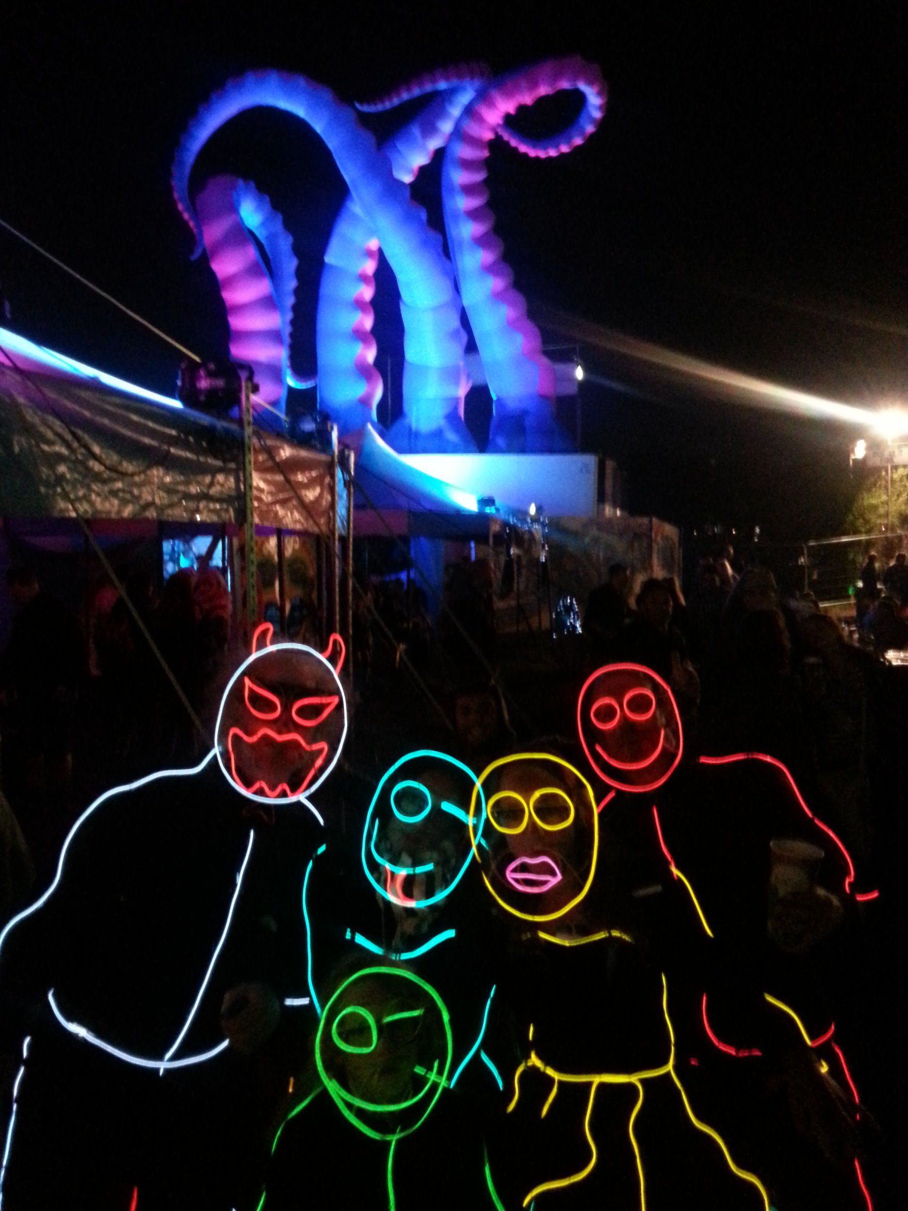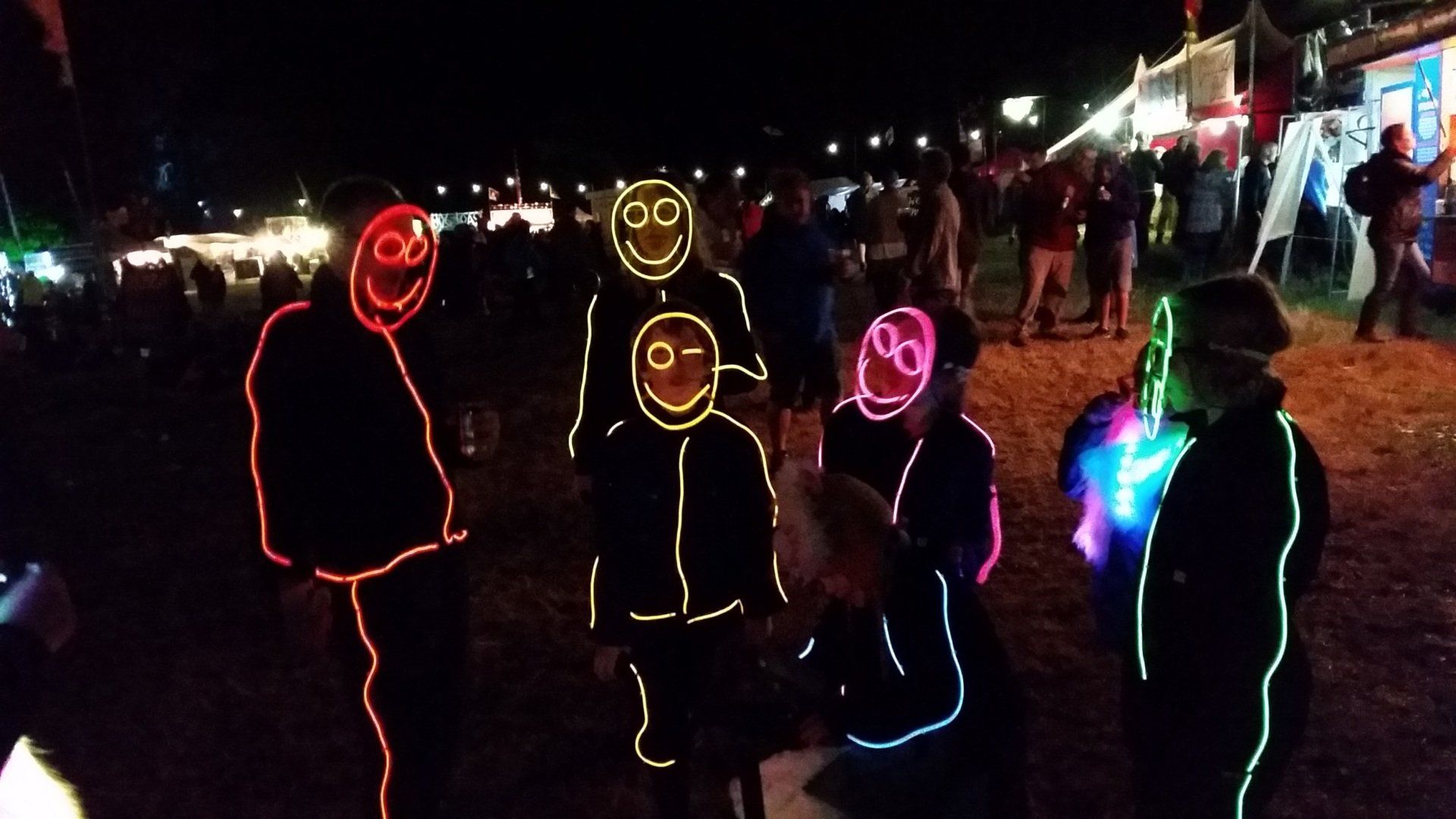 We have had various guest appearances from friends over the years in a variety of colours. In the last five or so years we have had a hardcore crew of three reappearing glow people: Sam (blue), Nella (yellow) and last, but definitely not least, Jane (green).