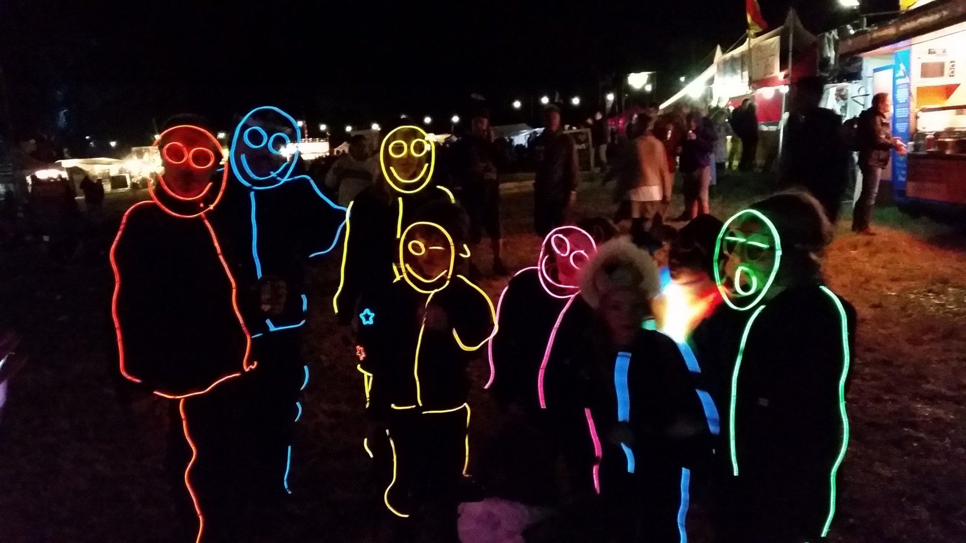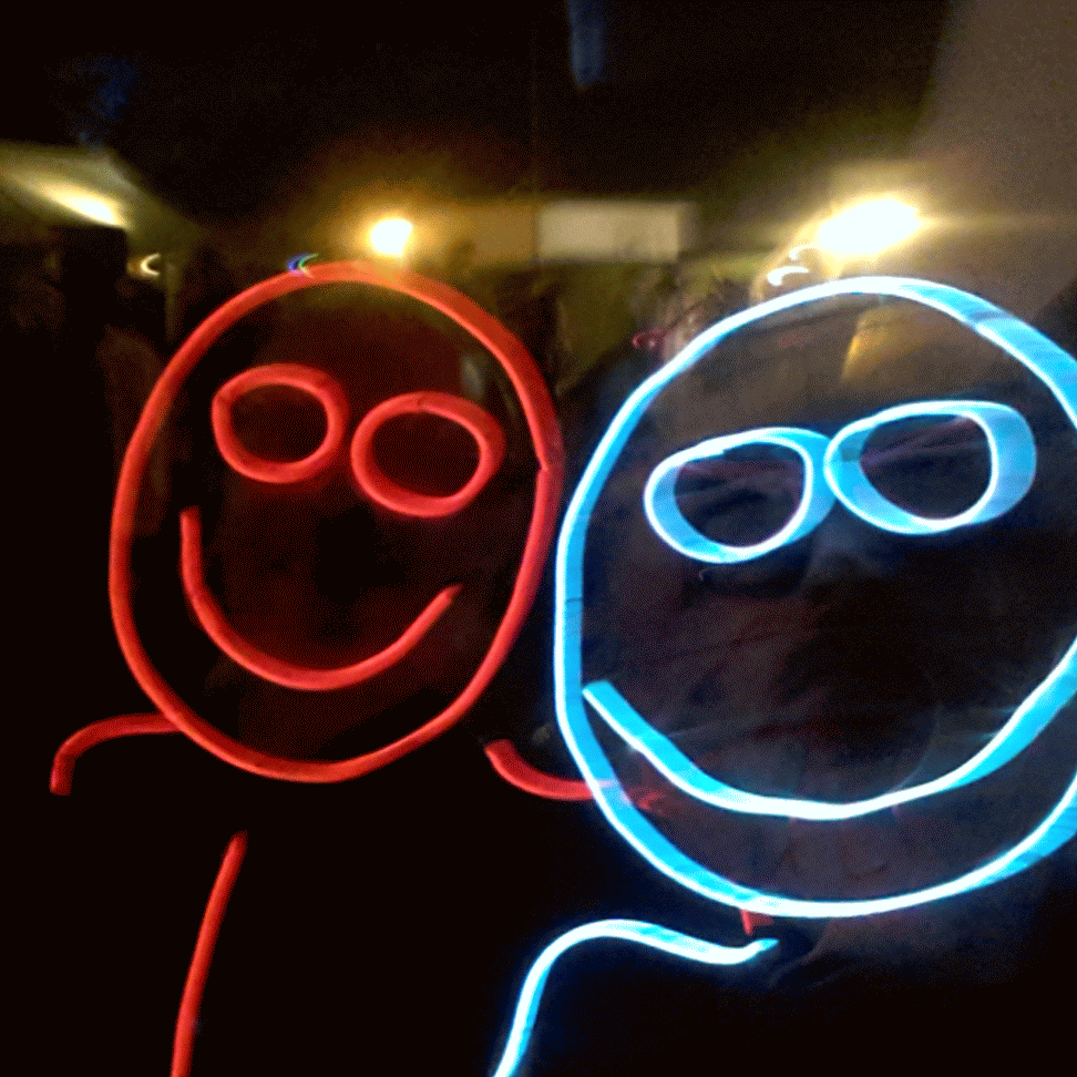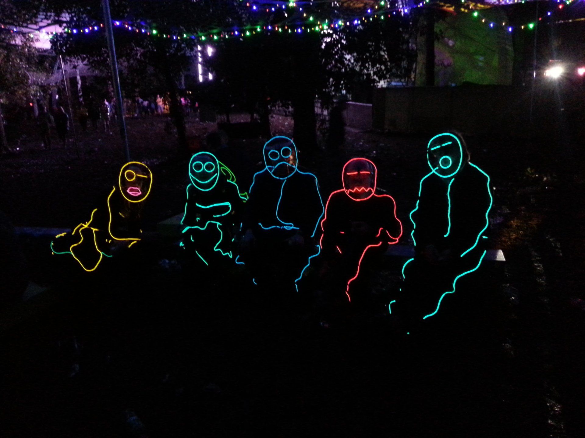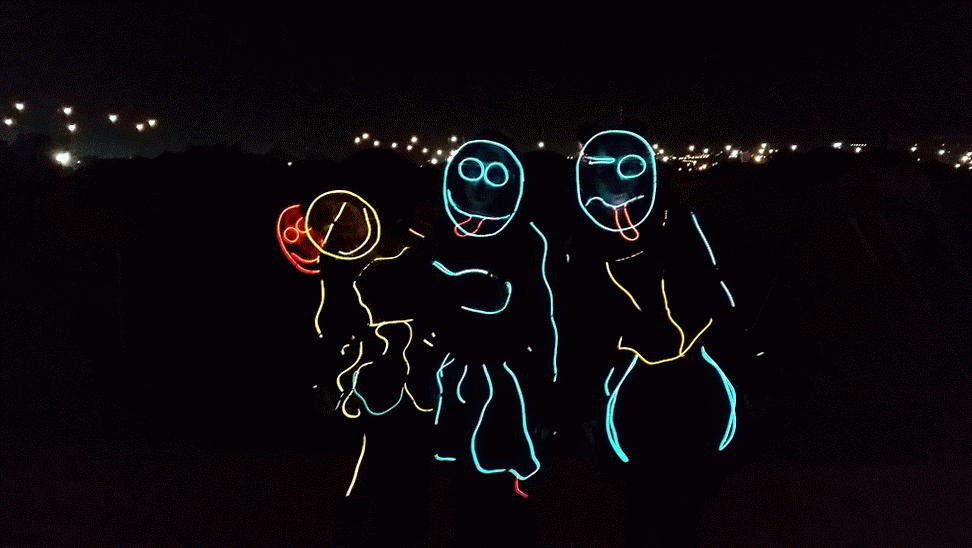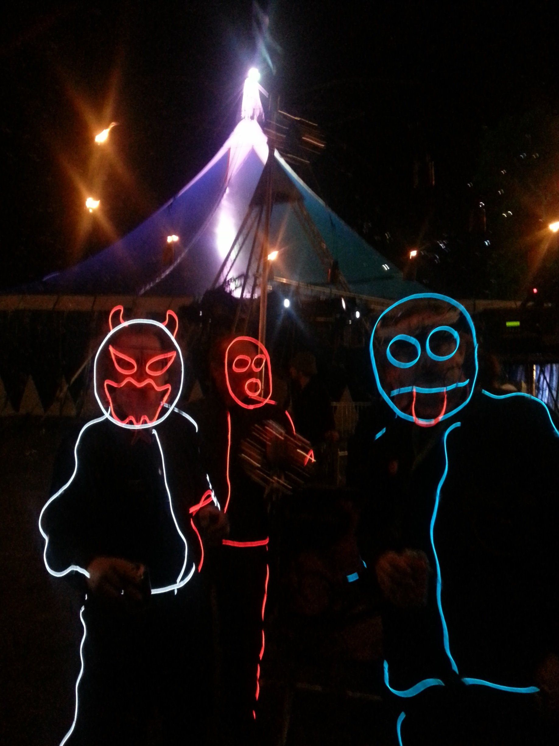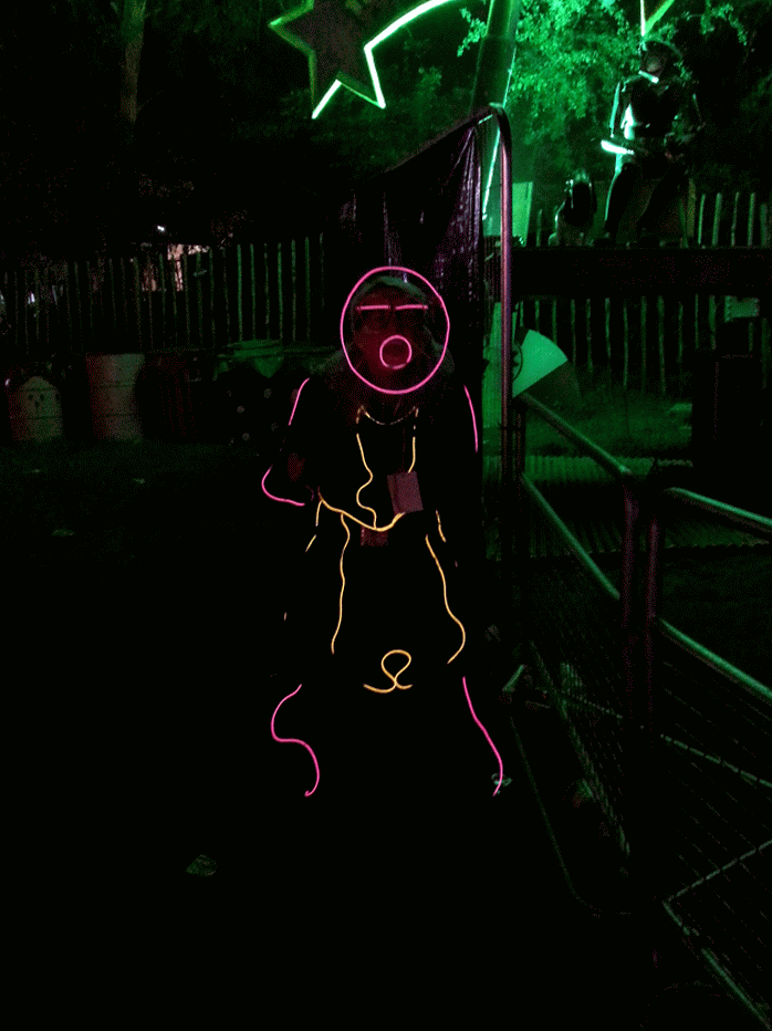 We have had various guest appearances from friends over the years in a variety of colours. In the last five or so years we have had a hardcore crew of three reappearing glow people: Sam (blue), Nella (yellow) and last, but definitely not least, Jane (green).