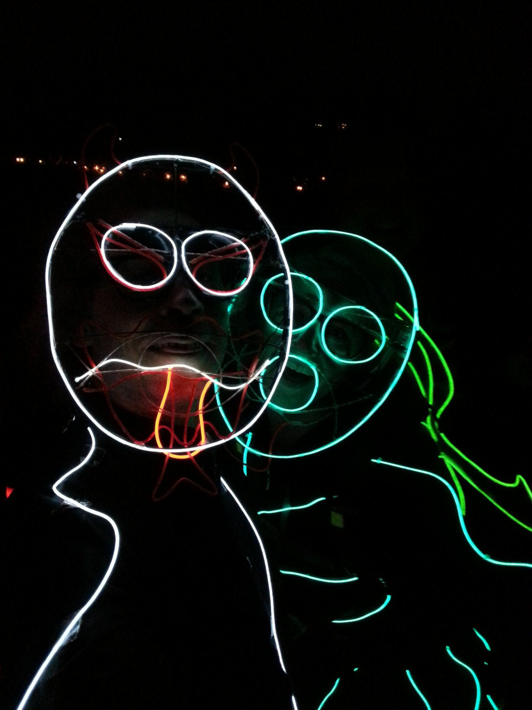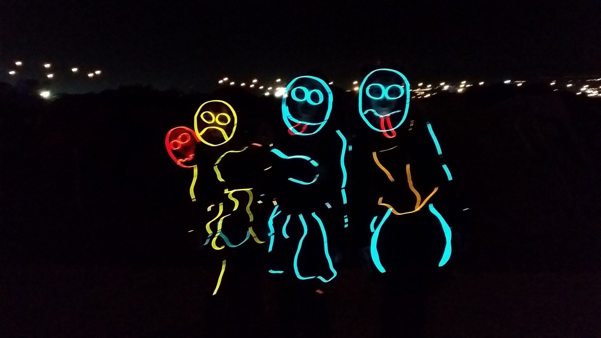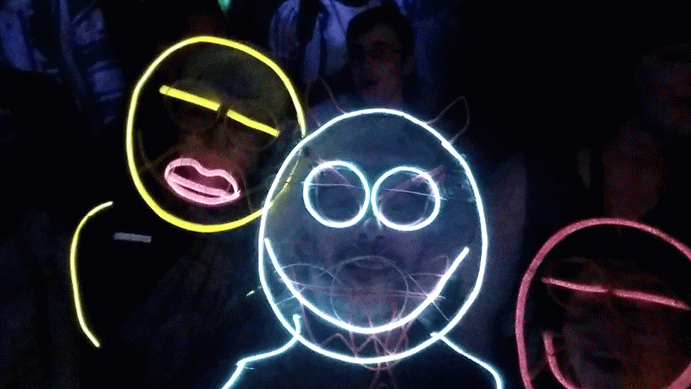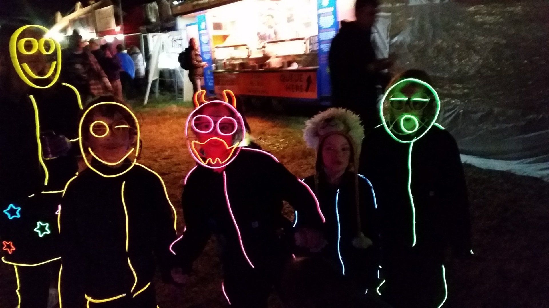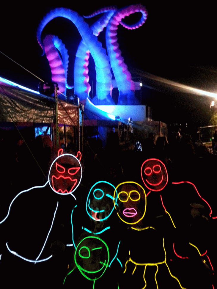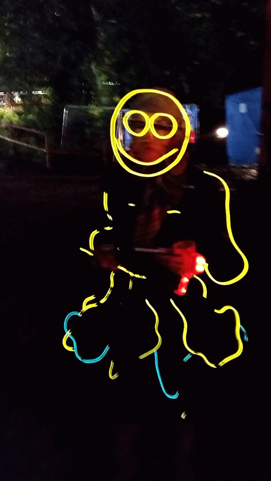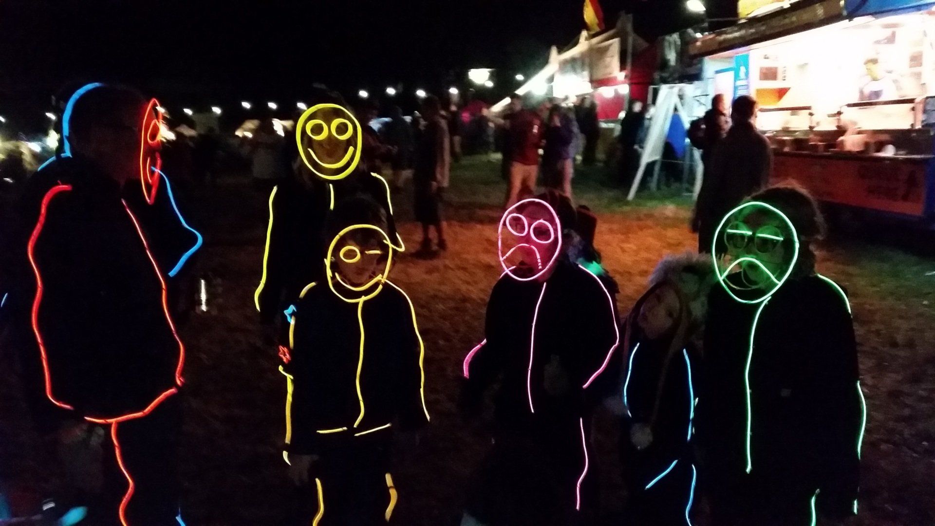 We have had various guest appearances from friends over the years in a variety of colours. In the last five or so years we have had a hardcore crew of three reappearing glow people: Sam (blue), Nella (yellow) and last, but definitely not least, Jane (green).