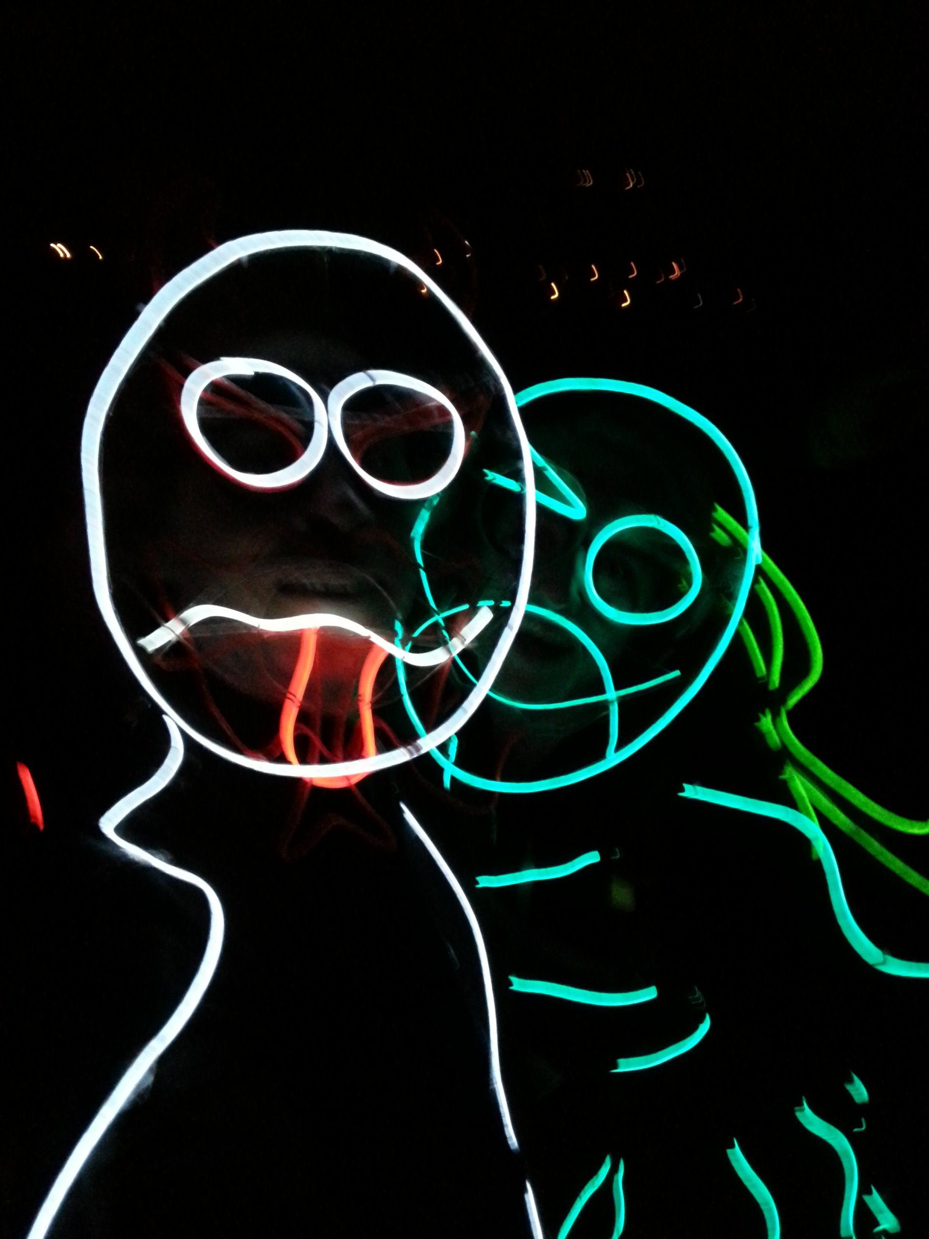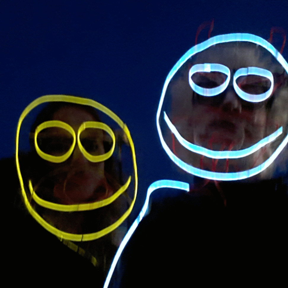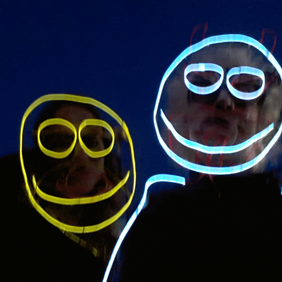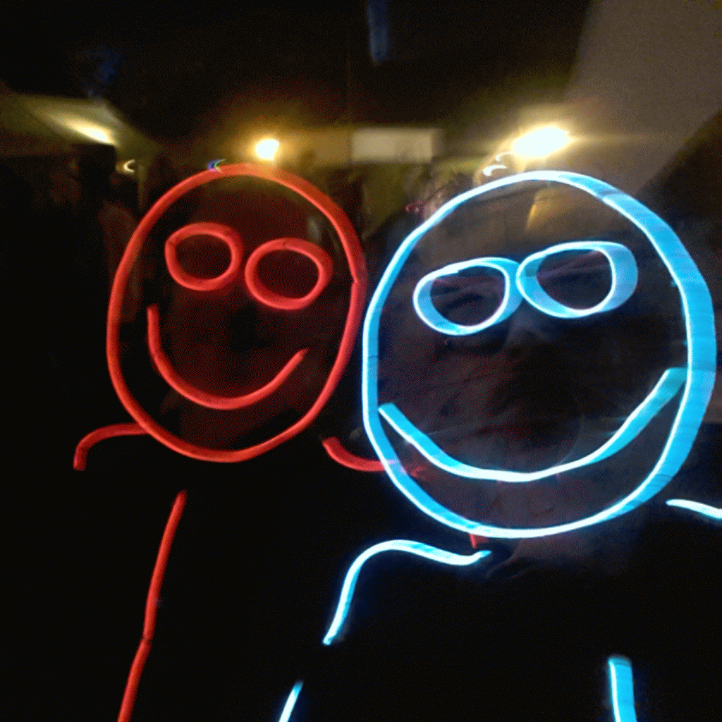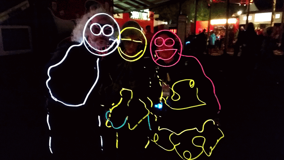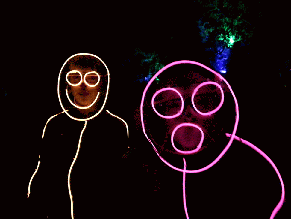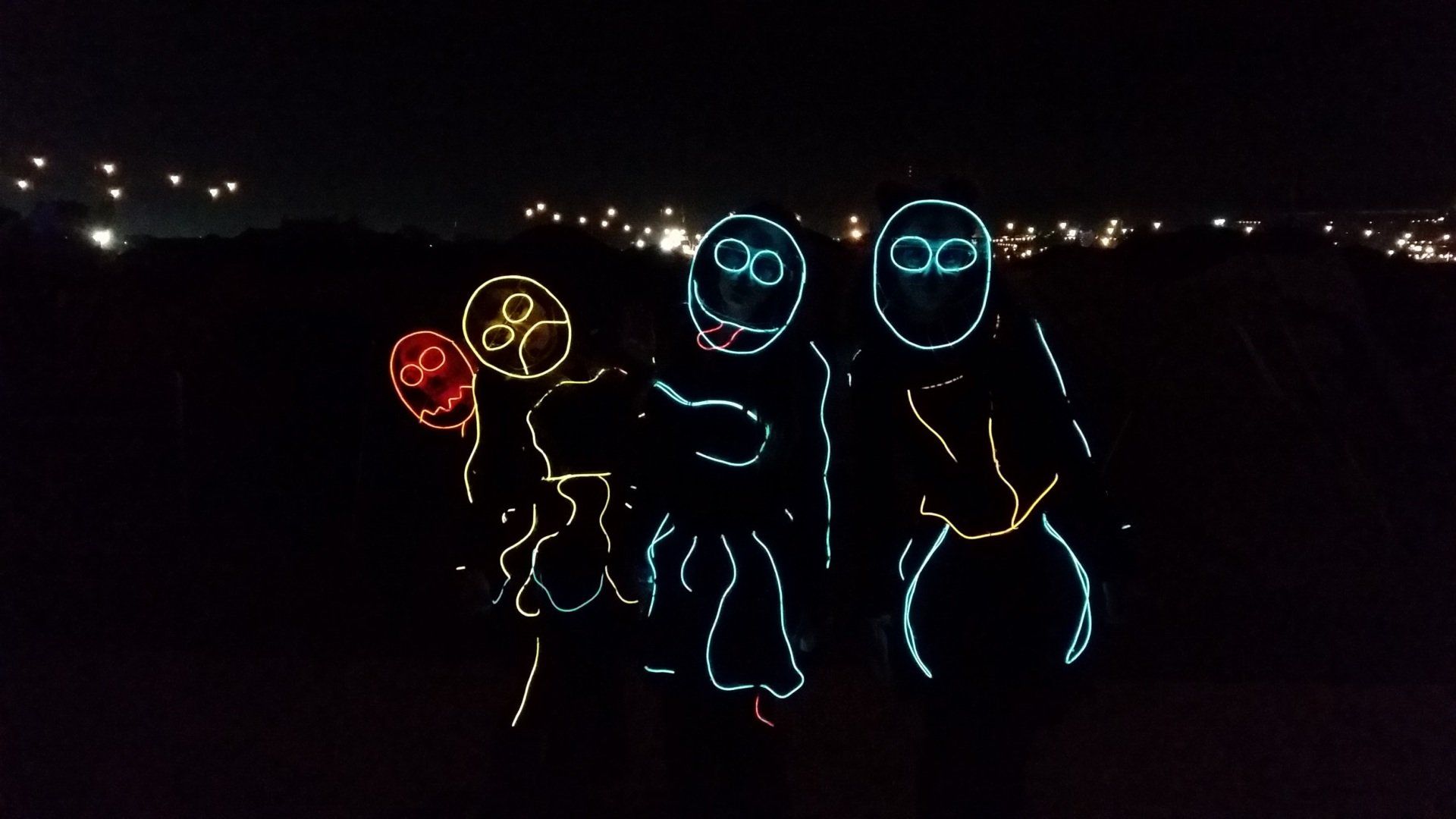 We have had various guest appearances from friends over the years in a variety of colours. In the last five or so years we have had a hardcore crew of three reappearing glow people: Sam (blue), Nella (yellow) and last, but definitely not least, Jane (green).