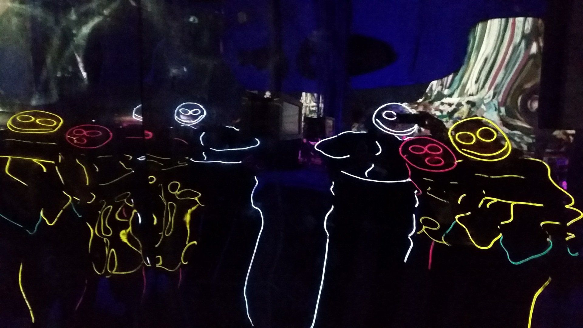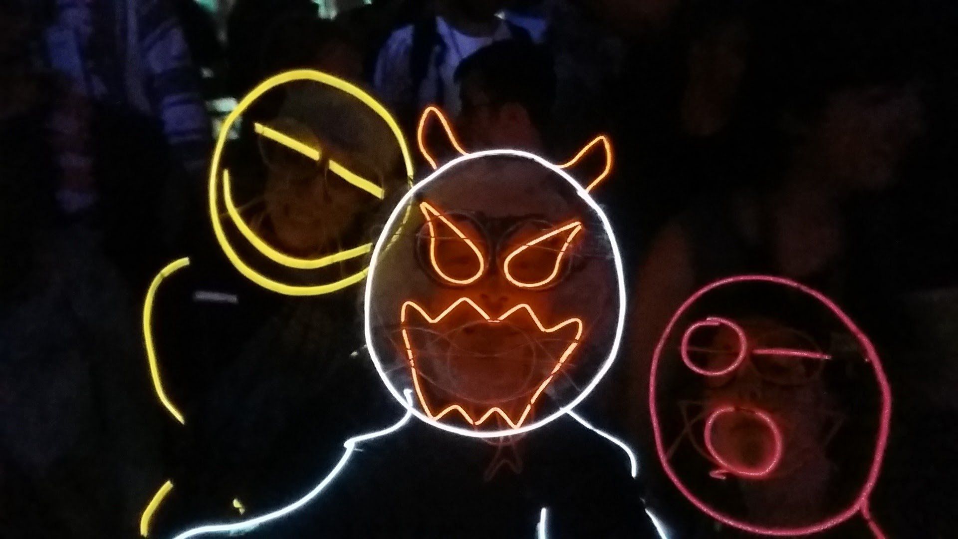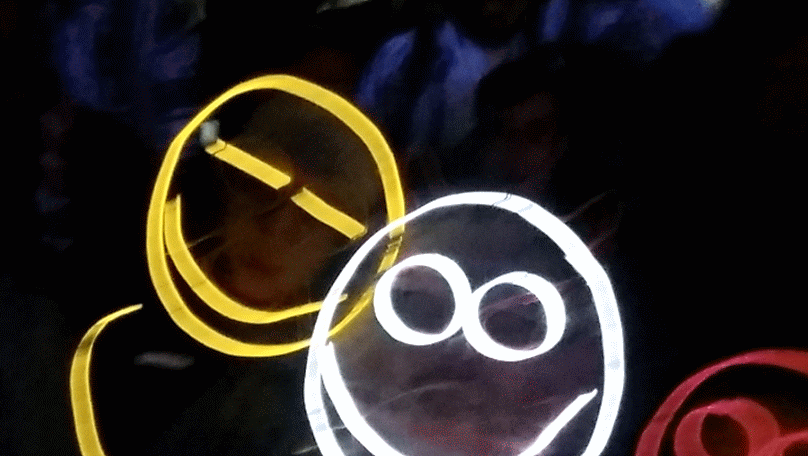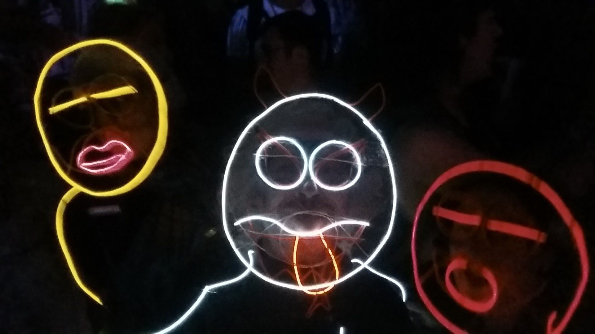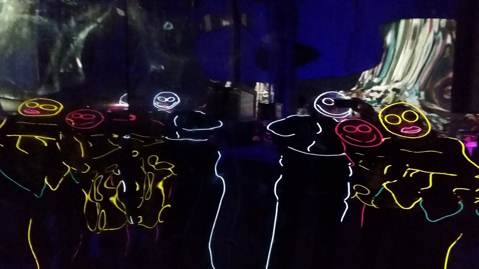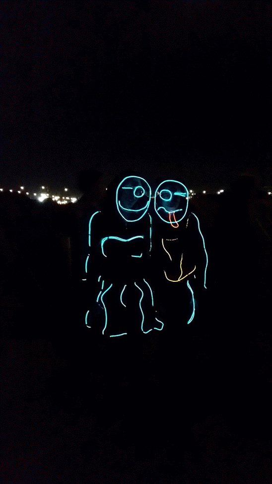 We have had various guest appearances from friends over the years in a variety of colours. In the last five or so years we have had a hardcore crew of three reappearing glow people: Sam (blue), Nella (yellow) and last, but definitely not least, Jane (green).