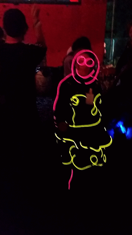 Since the arrival of children in our world, we have been using Glowsuits to keep track of them at festivals. They are learning the art of glowing.. here comes the next generation of glow people!