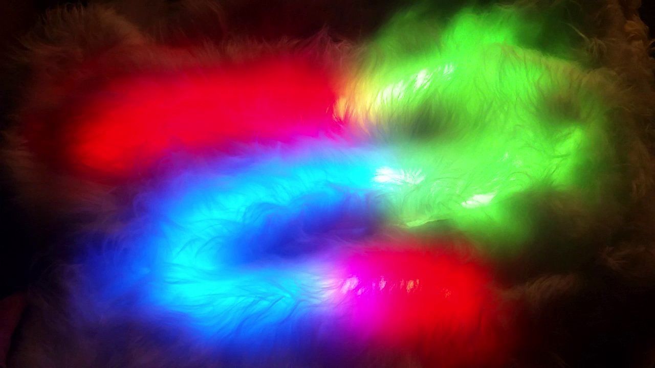 The Rainboa's pattern and colour can be set with the two buttons on the controller. One button along with the on board gyros selects the pattern, colour, speed and brightness .